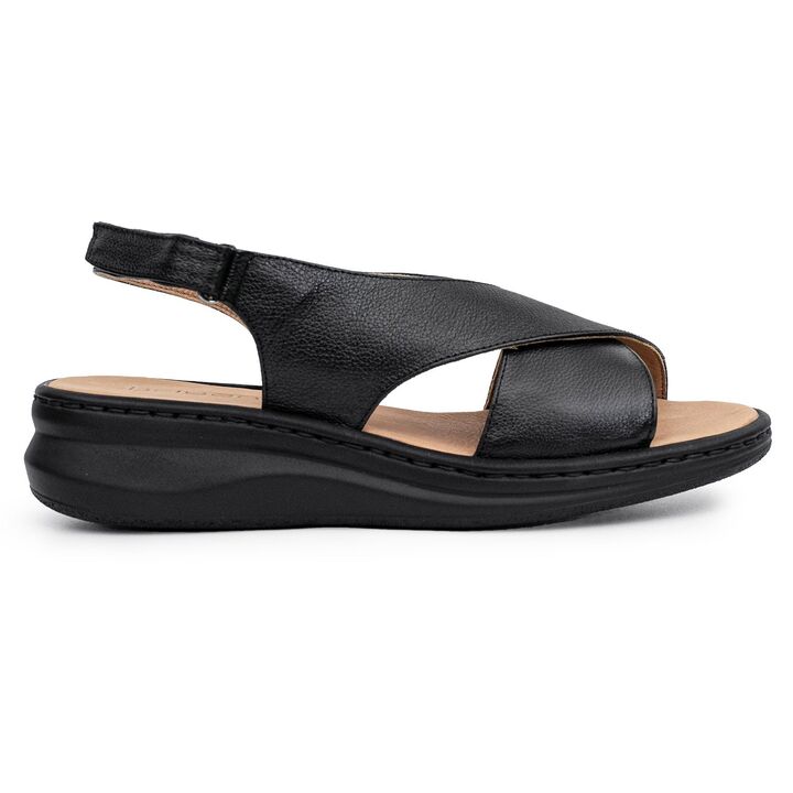 La Sandalia Liza combina comodidad y estilo con un diseño cruzado moderno. Confeccionada en 100% cuero, cuenta con base de goma antideslizante y ajuste de velcro, ofreciendo confort y un look casual con un toque juvenil. - Base: Goma - Material Interno: Cuero - Material Externo: Cuero - Articulo: M...