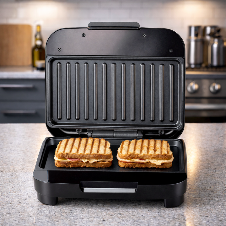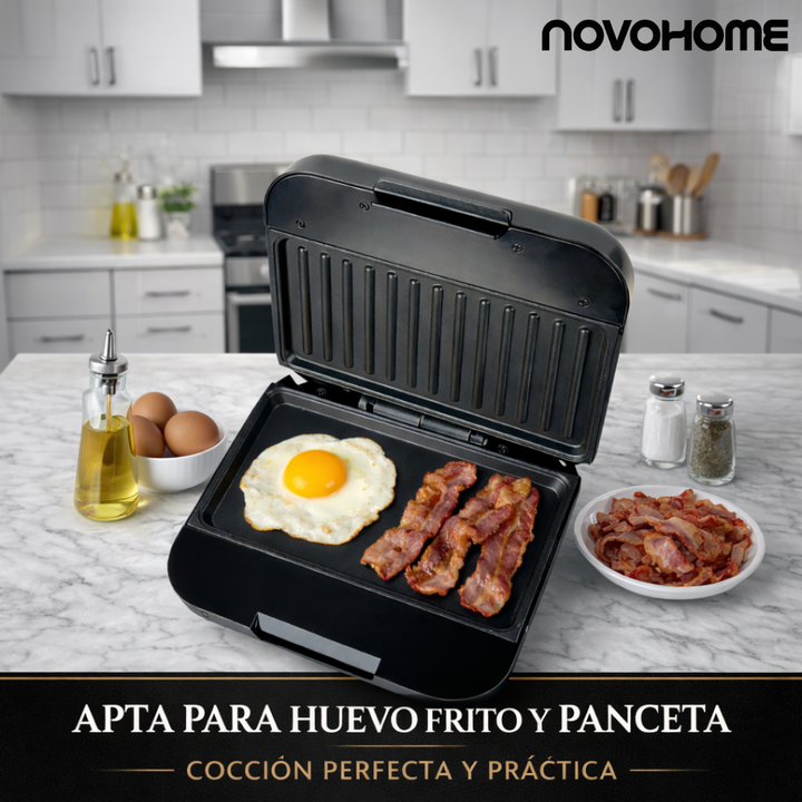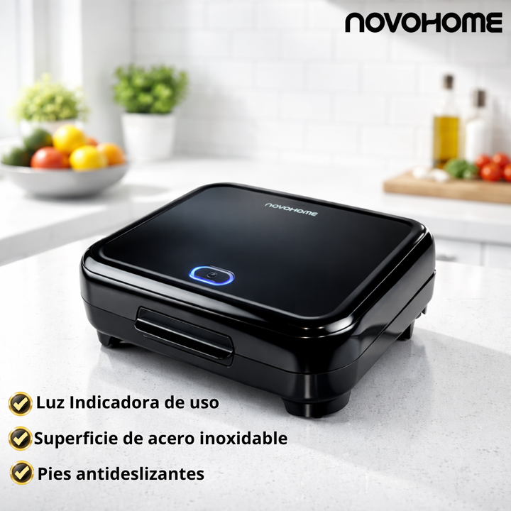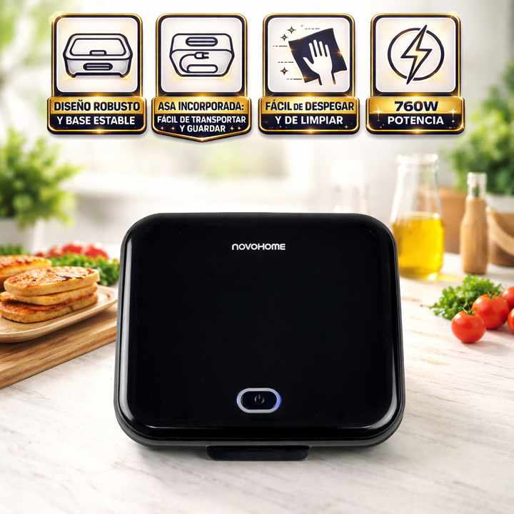 NOVOHOME SANDWICHERA ELECTRICA 760W SKU: NH-SM1201 EL GRILLADO PERFECTO EMPIEZA EN CASA Texturas doradas, aromas que despiertan y ese dibujo inconfundible del grill sellando el sabor. Una sandwichera diseñada para transformar lo simple en algo digno de disfrutar. Moderna, precisa y creada para quien...