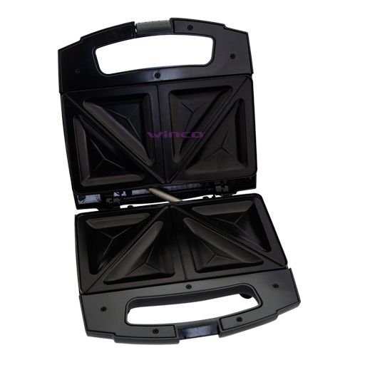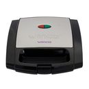 Sandwichera de superficie anti-adherente, uso pan lactal tipo sellado, para 2 sándwiches, con traba de seguridad, paredes frías, indicadores luminosos y calentamiento rápido. Potencia: 220V / 750W.
