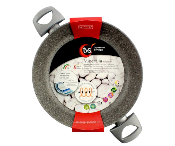 TVS SARTEN 2 ASAS H PAN 28 CM MINERALIA INDUZIONE SKU: 8000807036617 Descripción TVS, fabricante italiano líder en utensilios de cocina antiadherentes. El Sarten dos asas Mineralia Inducción de 28 cm está diseñada para los propietarios más exigentes y es apta para todo tipo de fogones! La tecnología...