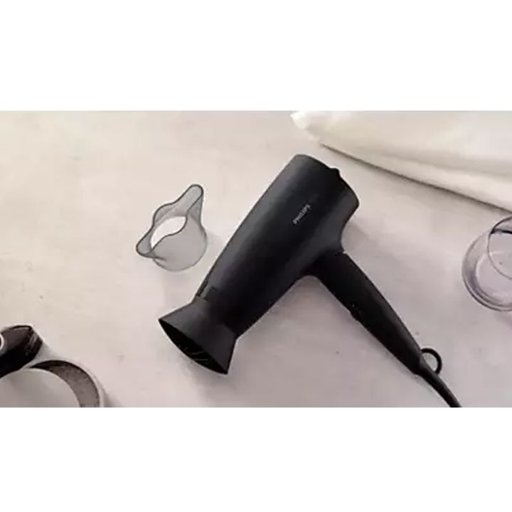Este secador de pelo de 1600 W crea un nivel de flujo de aire óptimo para que disfrutes de resultados perfectos, todos los días. El accesorio ThermoProtect con diseño único mezcla de manera potente el aire tibio y frío para el cuidado diario. Baja la temperatura en 10 °C mientras seca tu pelo rápida...