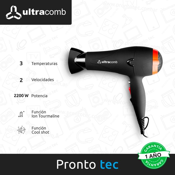 ¡Despedite del cabello reseco o desfibrado! Con su tecnología de Turmaline que genera iones para que tu pelo quede hidratado, suave y más luminoso, el secador de cabello profesional de Ultracomb te ayudará a mantener el grado justo de humedad para que puedas lucir espectacular todos los días. Con un...