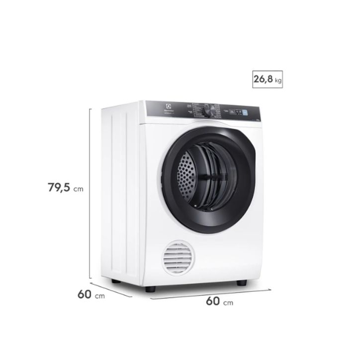 El Secarropas Electrolux Experience ofrece la exclusiva Tecnología AutoSense, que mide la temperatura ideal para secar tu ropa con precisión. Tipo de Carga: Frontal Peso Embalado (en kg): 28 kg Capacidad de Secado: 8 kg Peso (en kg): 26.8 kg Tipo de Secado: Calor Alto Embalado (en cm): 84.5 cm Requi...
