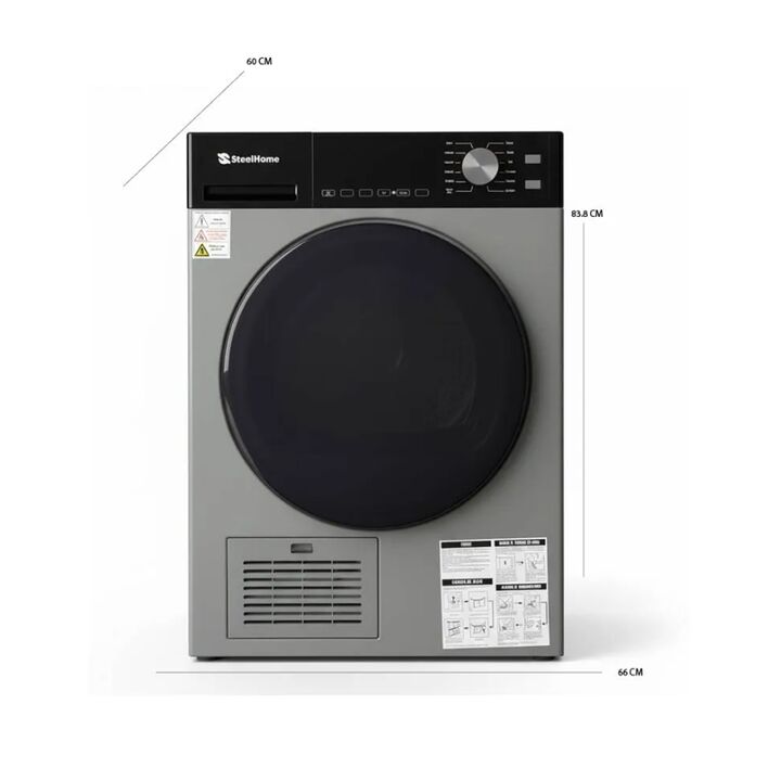 El Steel Home SH-SC8G es un secarropa automático de alta eficiencia que utiliza tecnología de condensación por calor, ideal para espacios reducidos o sin salida al exterior. Su diseño moderno en gris acero combina potencia, eficiencia energética y estilo, ofreciendo un secado rápido, uniforme y sin ...
