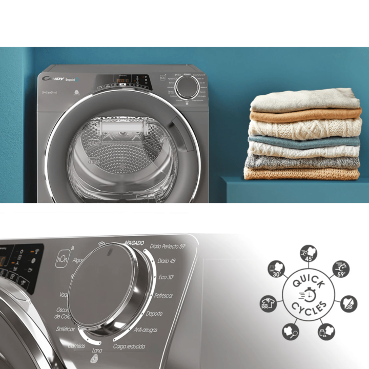 Secarropas Candy Smart carga frontal 9 Kg - ROEC9TCERX-12 Simplifica tu día con un secado rápido y perfecto Características Capacidad de 9 Kg Por condensación 14 programas Color Antracita Medidas (ANxALxPR): 59,6 x 85 x 58,5 cm Contenidos Smart Start Delay: hasta 24hs Easy Case Un secado excepcional...