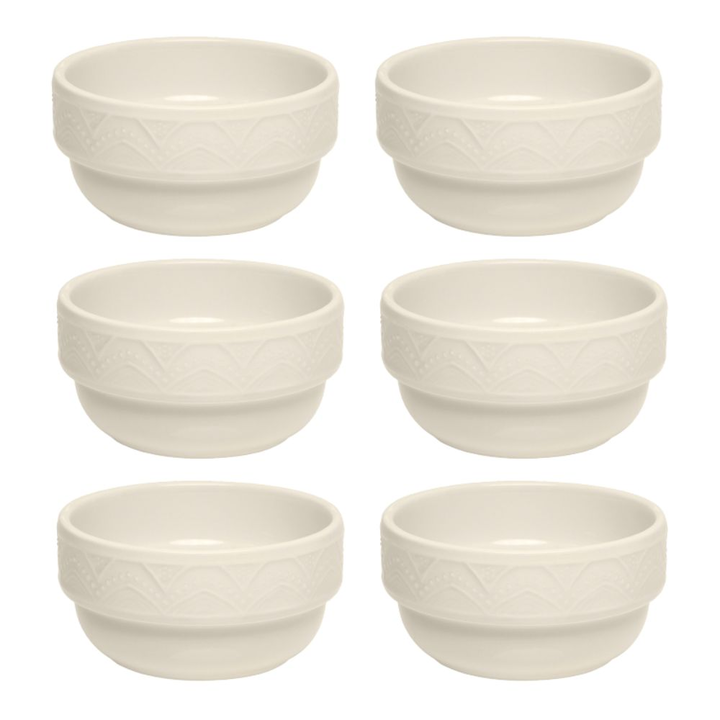 <p><em>* Medidas:<br />Capacidad: 500cc<br />Alto: 6cm<br />Diametro: 13c<br /><br />- Apto para lavavajillas y microondas</em><br /><em>- Material: Ceramica<br />- Modelo: Serena Cream<br />- Marca: Oxford <br />- Origen: Brasil</em><br /><br /><em>El set esta compuesto por: </em><br /><em><strong>...