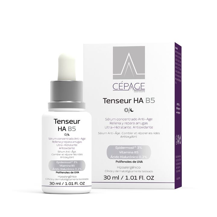 Serum Cepage Tenseur HA B5 Concentrado Reafirma Rostro 30 ml Sérum concentrado Anti-Age Aplicar Tenseur HA B5 serum sobre la piel limpia y seca del rostro, cuello y escote. Colocar 3 a 5 gotas sobre la piel realizando suaves masajes circulares con la yema de los dedos. Para alcanzar efectividad máxi...