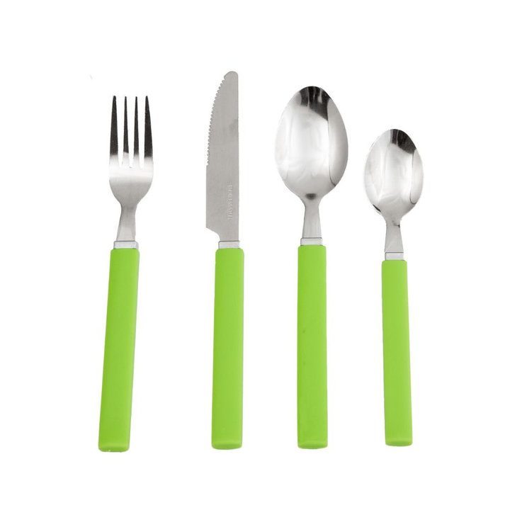 <p><em>- Material: Acero con mango plastico</em><br /><em>- Color: Verde</em><br /><em>- Marca: Nouvelle Cuisine</em><br /><em>- Origen: China</em><br /><br /><em>El Set Contiene:<br /></em><br /><em>- 6u. de Cuchillos 20.5cm</em><br /><em>- 6u. de Tenedores 18.5cm</em><br /><em>- 6u. de Cucharas 19...
