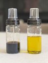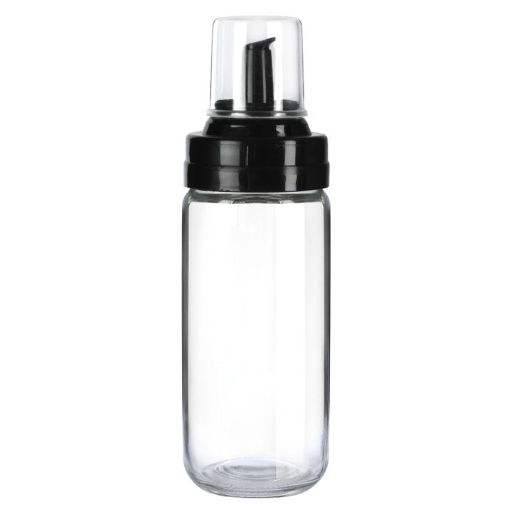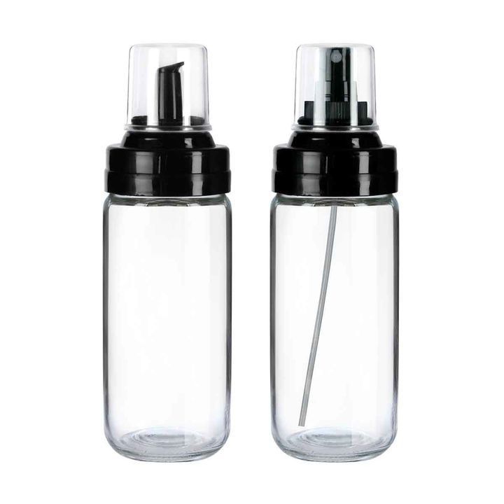 Set x compuesto por 2 unidades ( diferente pico) Aceitera Vinagrera y Rociador de Vidrio Dosificador Dispenser con pico vertedor y tapa Alto cada uno : 18cm Ancho cada uno : 5.5cm Capacidad cada uno : 245cc Material: Cuerpo de Vidrio Tapa: Plastico negro ( uno con spray y otro con pico vertedor) y t...