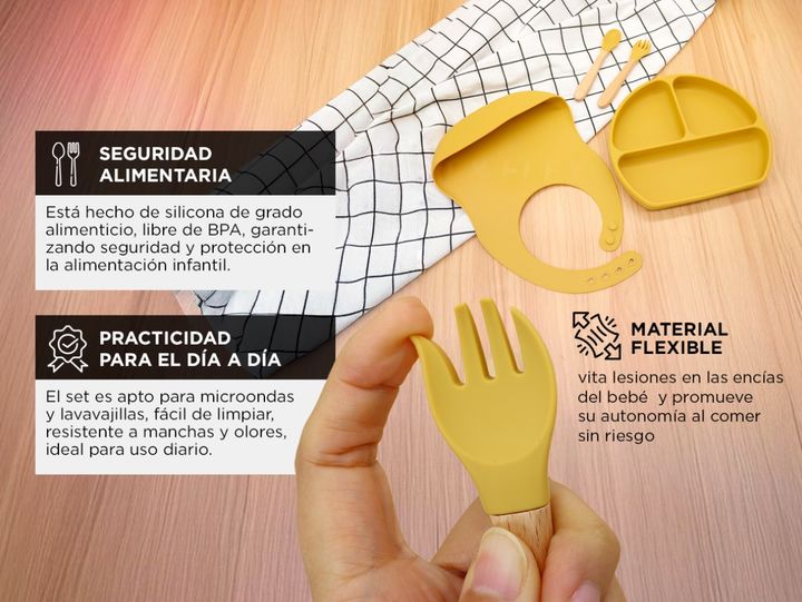 El Set de Alimentación para Bebés Gadnic ha sido diseñado para acompañar el crecimiento de tu bebé de forma segura y práctica. Fabricado en silicona de grado alimenticio, este set incluye un plato con divisiones y base de succión que evita derrames accidentales, un babero ajustable con recojemigas, ...