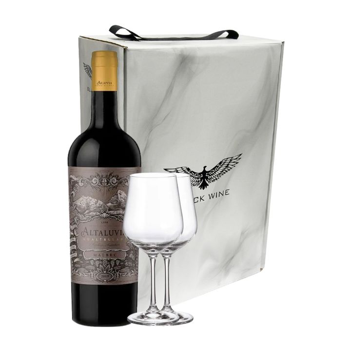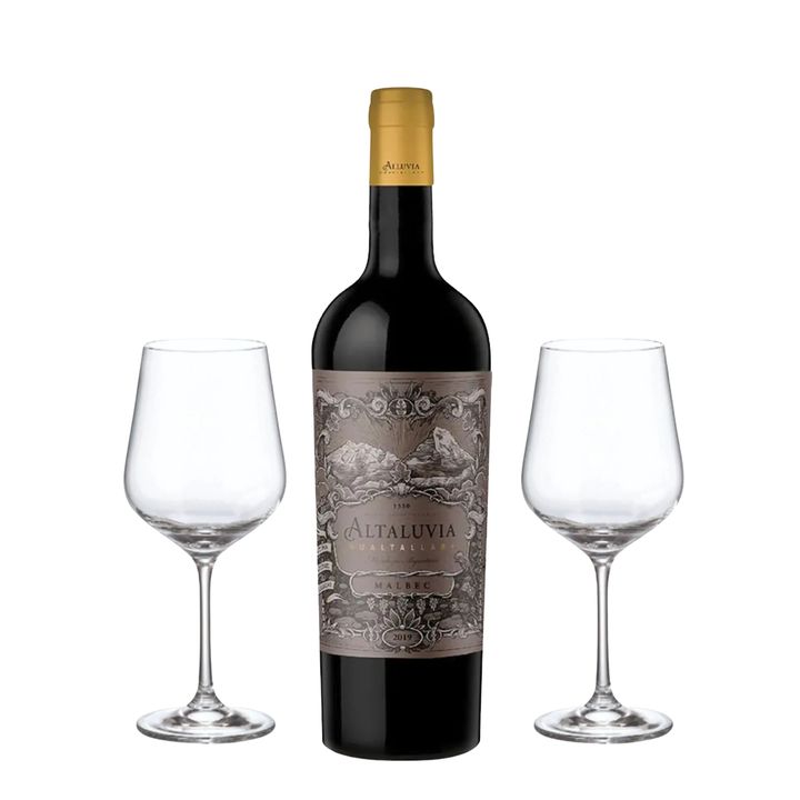 Set Altaluvia Malbec 750 ml y 2 Copas Con Estuche