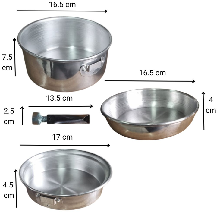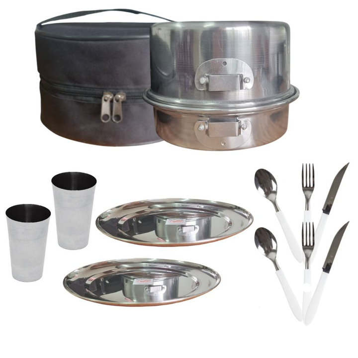 <p>Este combo incluye:<br /> <br />-1 Set de marmitas para 2 personas:<br /><br />-1 Sarten: 4cm x 18cm x 18m / Diametro 16cm<br />-1 Cacerola: 7.5cm x 17cm x 17cm / Diametro 16cm<br />-1 Mango 2cm x 13.5cm x 2cm<br />-1 Plato mochilero 4cm x 17cm x 17cm<br />-1 Jarro n8 7cm x 12cm (con asa) <br />-...
