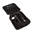 Set de cortadora de cabello y trimmer profesional. 2 cuchillas intercambiables para diversos cortes. Accesorios: cuchillas de 3; 6; 9 y 12 mm, cuchillas oblicua e izquierda, peines, tijera, cepillos grande y chico, horquilla, delantal y aceite. Trimmer a pila. Potencia: 8W.