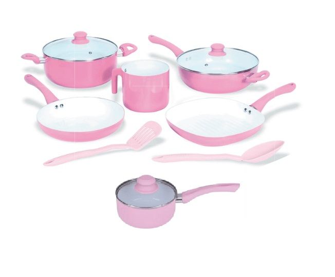 9 Pzas. dos utensillos Compuestos Cacerola Salsera 16 Cm.-Cacerola 24 Cm.-Wok 26 Cm. CTapa-Sarten 24 Cm.-Bifera -Jarro 14 Cm.-EspatulaCuchara Guiso nylon