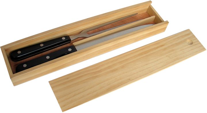 -34 x 4,1 x 7,3 cm Juego de cuchilla y tenedor en caja de madera.