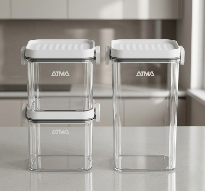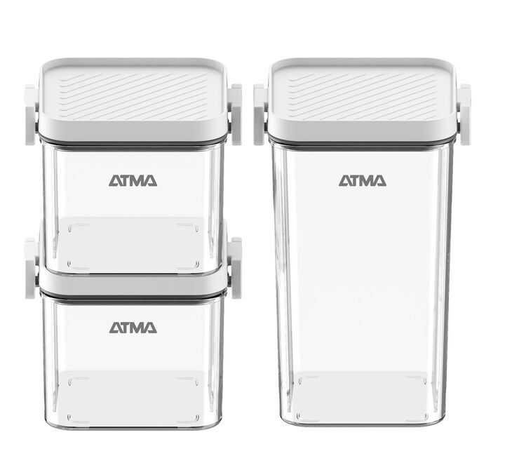 SET DE FRASCOS HERMETICOS ATMA HOME 420ML 600ML 1240ML OASFH118P El Set de Frascos Herméticos Atma Home incluye tres recipientes de distintas capacidades (420 ml, 600 ml y 1240 ml), ideales para conservar alimentos de forma segura y mantener la frescura por más tiempo. Su diseño práctico los hace pe...