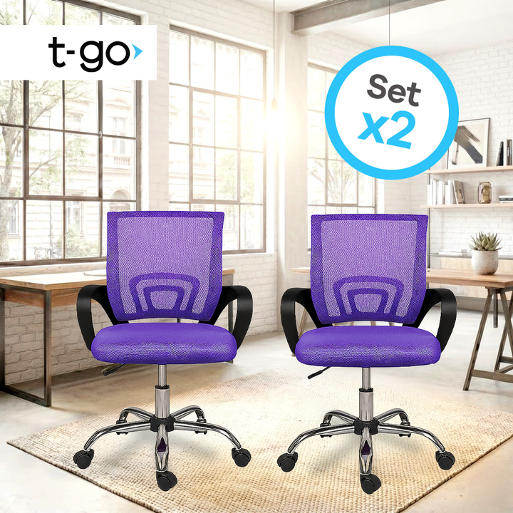 Combo x2 Sillas de Oficina T-GO: Confort, Diseño Mesh y Ergonomía *El Pack incluye: 2 Sillas completas (mismo modelo y color). *Estructura: Base metálica reforzada con terminaciones en PVC de alta durabilidad. *Tapizado: Tela Mesh respirable de alta resistencia y muy fácil limpieza. *Regulación de a...