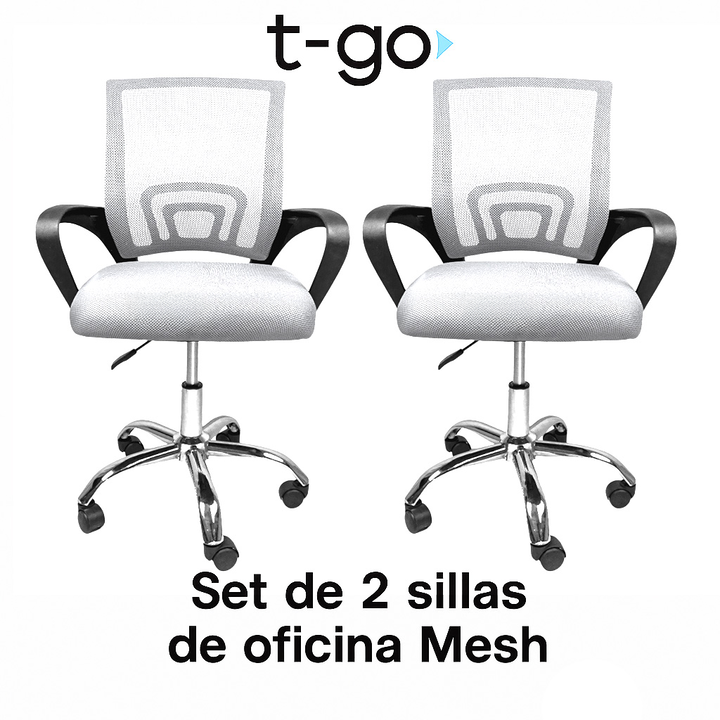 Combo x2 Sillas de Oficina T-GO: Confort, Diseño Mesh y Ergonomía *El Pack incluye: 2 Sillas completas (mismo modelo y color). *Estructura: Base metálica reforzada con terminaciones en PVC de alta durabilidad. *Tapizado: Tela Mesh respirable de alta resistencia y muy fácil limpieza. *Regulación de a...