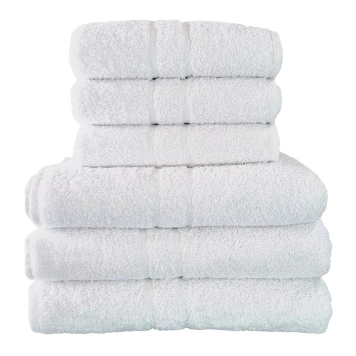 Medidas: Toalla: 0.90 x 0.50 mtrs. Toallón: 0.90 x 1.50 mtrs. Peso: 550 grs. Color: Blanco.