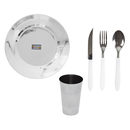 <p><em>- Material: Acero Inoxidable / Plastico</em><br /><em>- Marca: Nouvelle Cuisine</em><br /><em>- Origen: China</em><br /><br /><em>Este set esta compuesto por:</em><br /><br /><em>- 1u. de Vaso De Acero Inoxidable 11Cm<br />- 1u. de Plato Playo De 21Cm Acero Inoxidable<br />- 1u. de Cuchillo D...