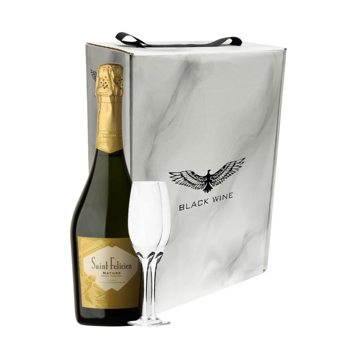 Set Espumante Saint Felicien Nature y 2 Copas Cristal Con Estuche