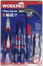 JUEGO DE HERRAMIENTAS 7 PIEZAS W009100 WORKPRO # 1 Cutter/Trincheta de 18 mm. # 3 Destornilladores ,PH1X75MM,PH2X75MM,5X75MM. # 1 Alicate universal de 6 . # 1 Alicate de punta larga de 6 . # 1 Martillo galponero con mango de fibra de vidrio de 12 oz. Garantía 12 meses Origen China.