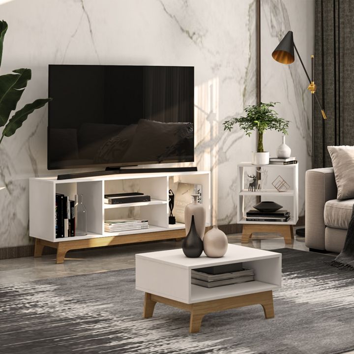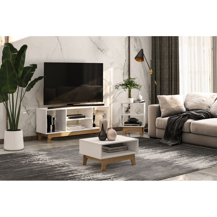 Juego de Living Completo Mix & Match - Blanco / Aveiro - Estilo Lincoln Compuesto por 3 piezas. Especificaciones técnicas: *Marca: Mix & Match *Código: 904041 *Color: Blanco / Aveiro *Material de la estructura: MDP / MDF 15mm *Acabado: BP (Melamina) / FF (Finish Foiled) *Repisas: 1 (en el rack), 1 (...