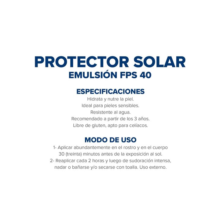 Componentes Protector Solar Dermaglos Emulsion Fps40 Piel Sensible 250ml Código: 7793742003516 | SKU: 008045 x 2 uni Hidrata y nutre la piel. Ideal para pieles sensibles. Resistente al agua. Recomendado a partir de los 3 años. Libre de gluten, apto para celíacos (Estudio de Determinación de Gliadina...