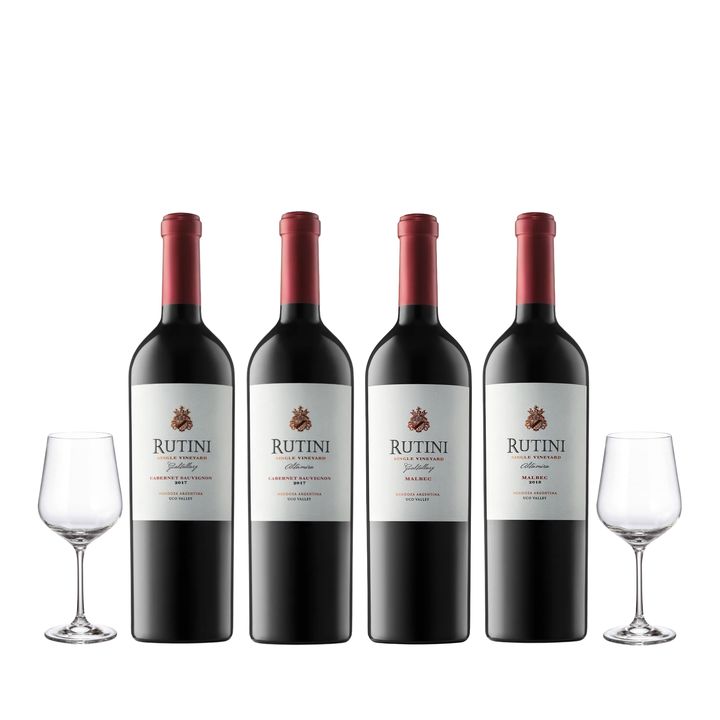 Set Rutini Single Vineyard 4 y 2 Copas Con Estuche