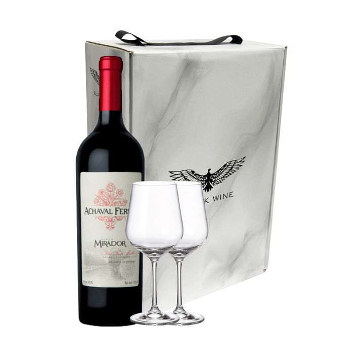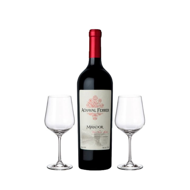 Set Vino Tinto Achaval Ferrer Mirador Malbec y 2 Copas Con Estuche