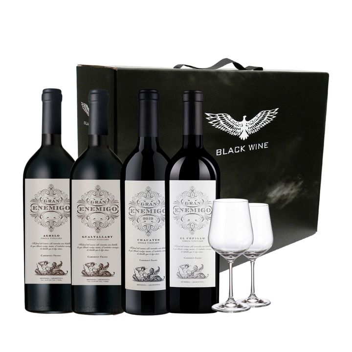 Set Vino Tinto Gran Enemigo Seleccion x 4 y 2 Copas Con Estuche