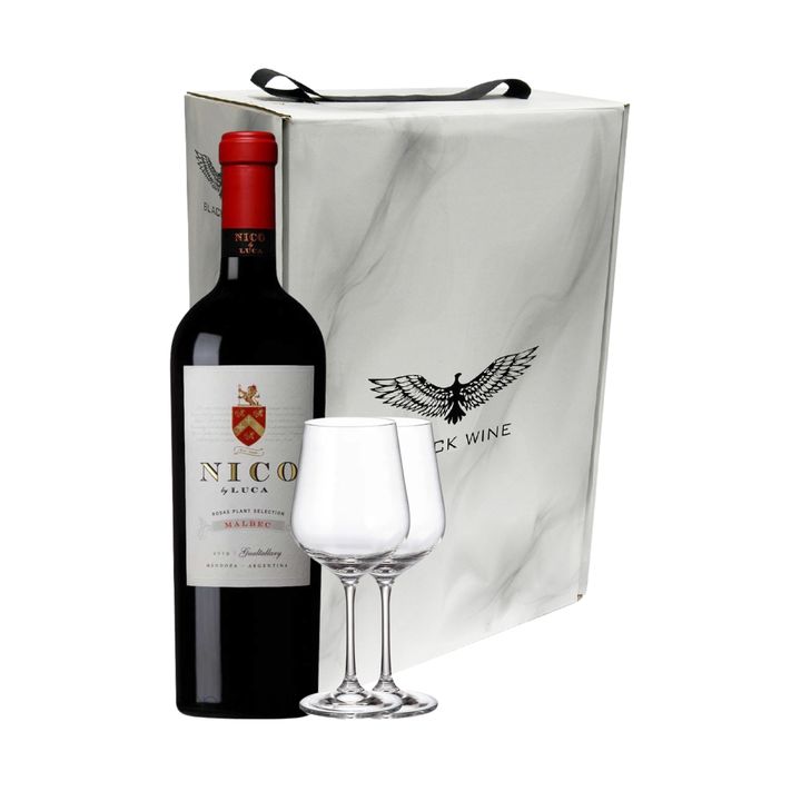 Set Vino Tinto Nico by Luca Malbec y 2 Copas Con Estuche