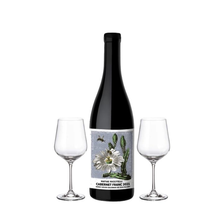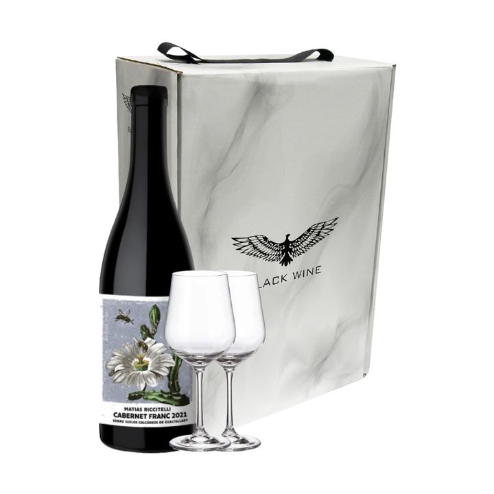 Set Vino Tinto Riccitelli Gualtallary Cabernet Franc y 2 Copas Con Estuche