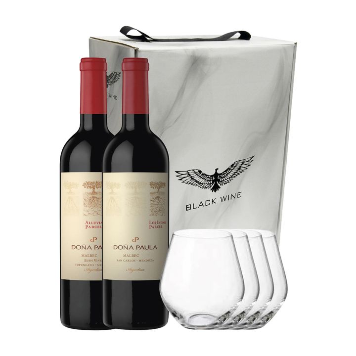 Set Vinos Tintos Doña Paula Parcell Seleccion x 2 y 2 Copas Con Estuche
