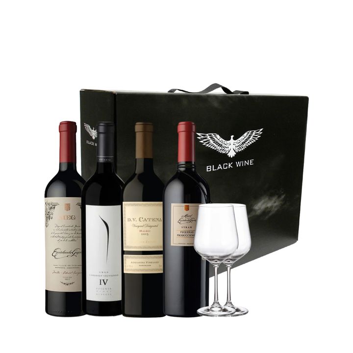 Set Vinos Tintos Valle de Uco Seleccion x 4 y 2 copas