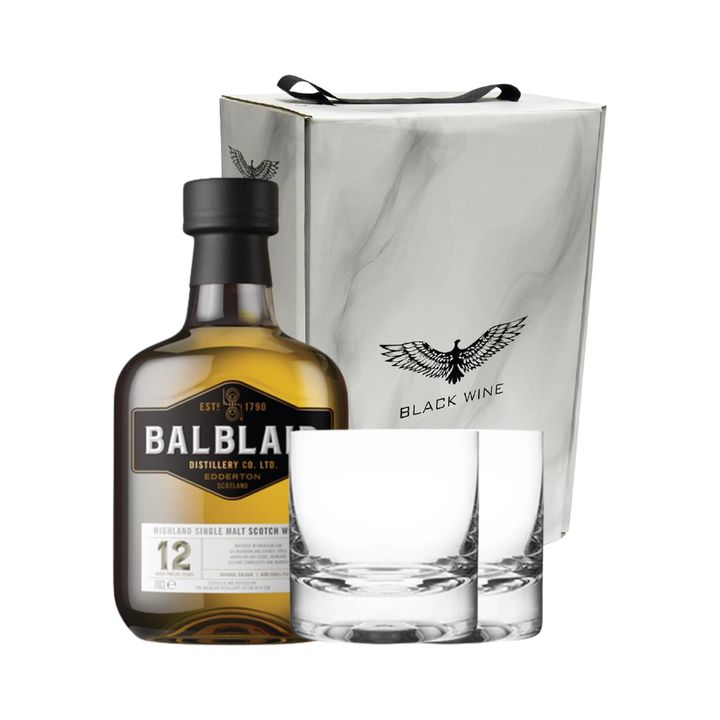 Set Whisky Balblair 12 Yo y 2 Vasos Lisos Con Estuche