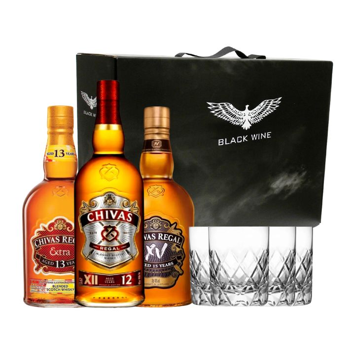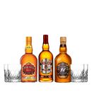 Set Whisky Chivas Regal Seleccion x 3 y 4 Vasos Tallados Con Estuche