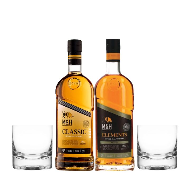 Set Whiskys MyH Classic Elements x 2 y 2 Vasos Lisos Con Estuche