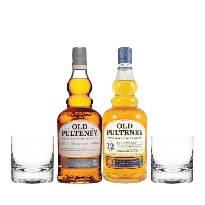 Set Whiskys Old Pulteney x 2 y 2 Vasos Lisos Con Estuche