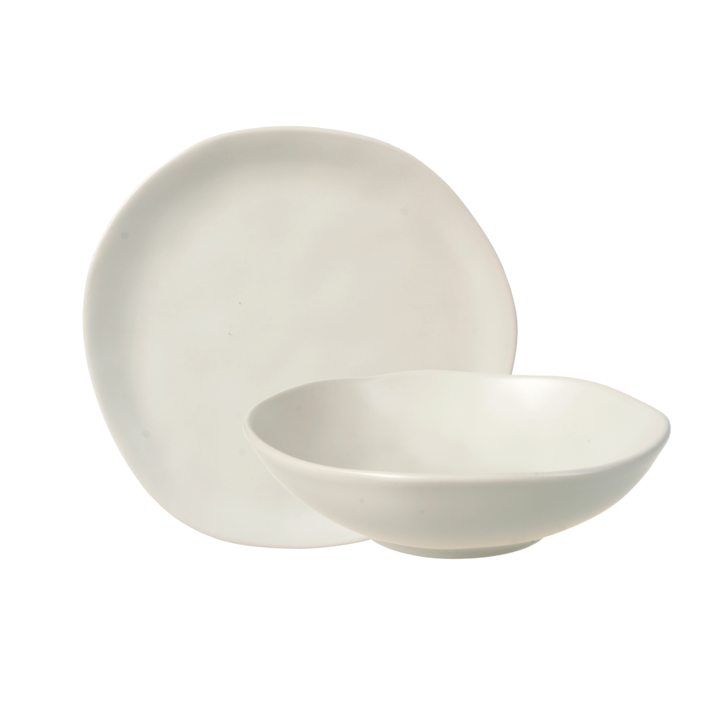 Set x 12 piezas Vajilla Platp Playo Hondo Ceramica Organic Aston Crema