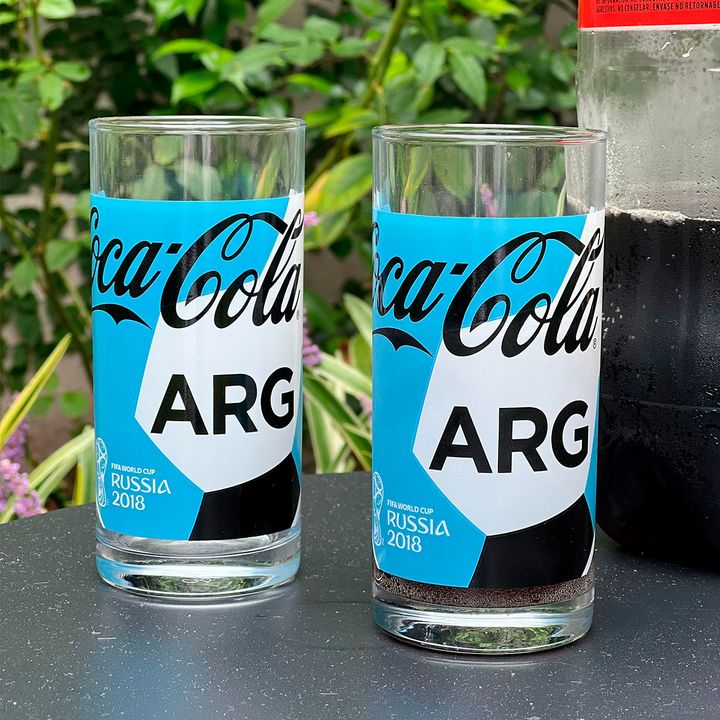 Set x 12 Vasos de Vidrio con logo Coca Cola Mundial Argentina Medidas : Altura: 13 cm / Diámetro : 6cm Capacidad: 245 cc Material: Vidrio estampado con logo Coca Cola , Argentina , FIFA WORLD CUP 2018 Marca : Pasabahce Origen: Turquía -------------- ¡Brinda con estilo en cada celebración! Estos vaso...