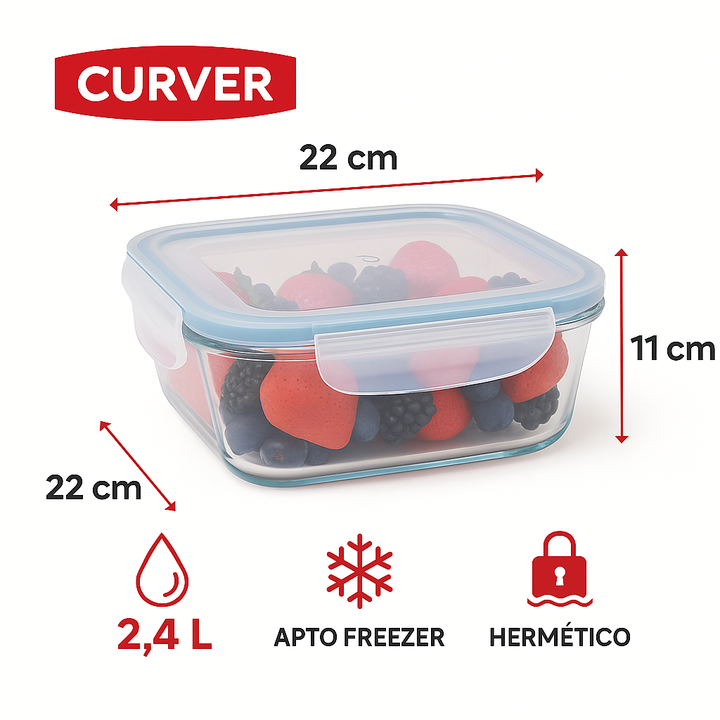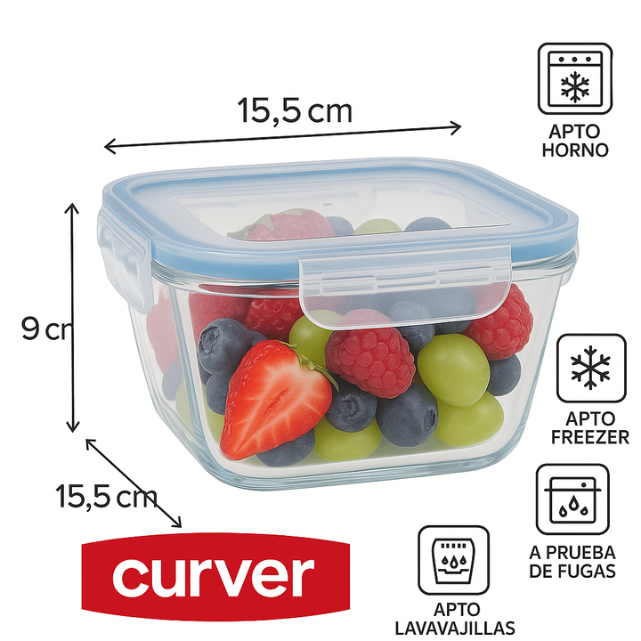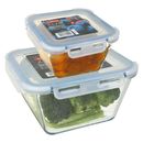 Set compuestos por 2 hermeticos grandes , contenedores, Tapers de Vidrio con tapa Plastica y Goma con Cierre Clip en cada uno de sus lados. Tamaño y capacidad grande y mediano. Apto para cocinar en horno , calentar en microondas , poner en freezer y lavavajillas. Medidas : 1- Hermetico cuadrado gran...