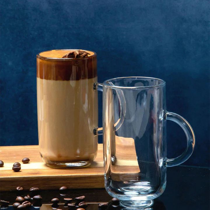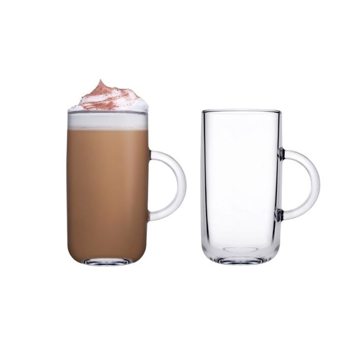 Set compuesto x 2 Tazas Jarros Mug con agarre ( manija) en Vidrio Capacidad : 270 cc Ideal para Cafe con leche , te , limonadas , Tragos Medidas : Taza : Altura : 11 cms / Diametro boca : 6 cms / Diametro base : 5.5 cms Lleva la forma de la serie más preferida: Básica. Fácil agarre con asa Ideal par...