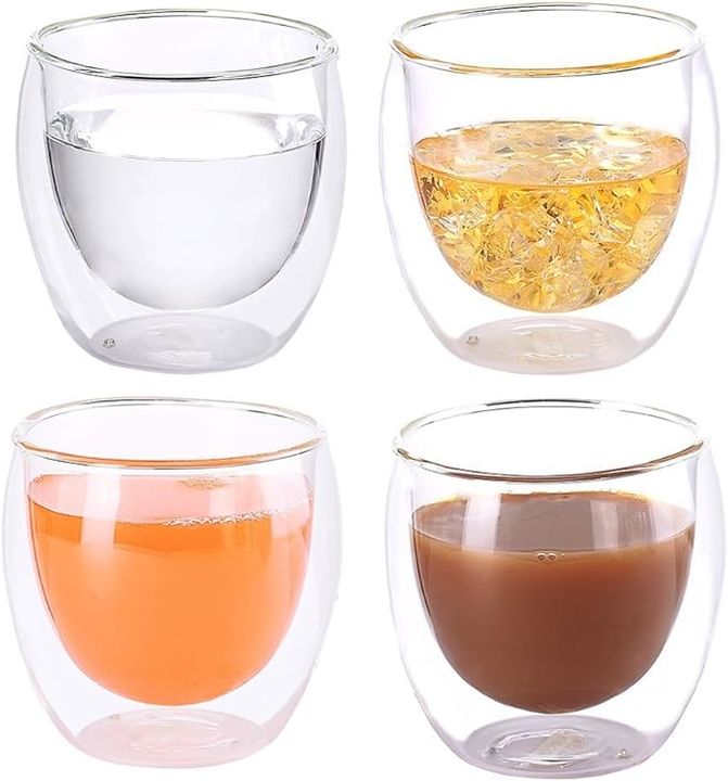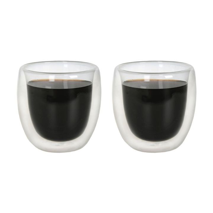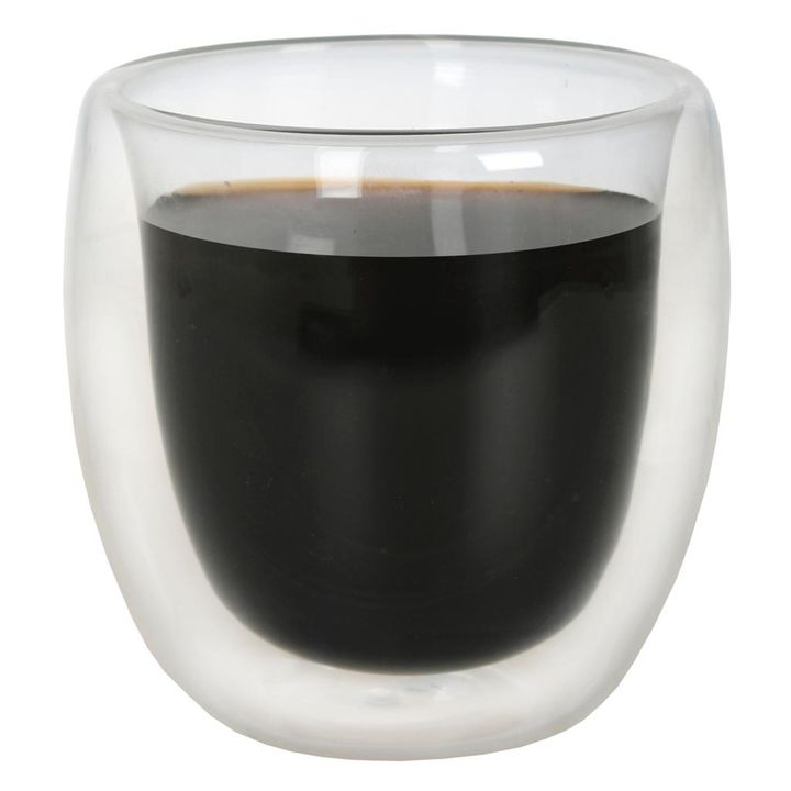 Set x 2 tazas vasos doble vidrio . Ideal para tomar un rico cortado con crema, canela o chocolate rallado Capacidad : 80cc Medidas: Boca: 6 cm Base: 4 cm Altura: 6cm Marca Aston Industria : importada