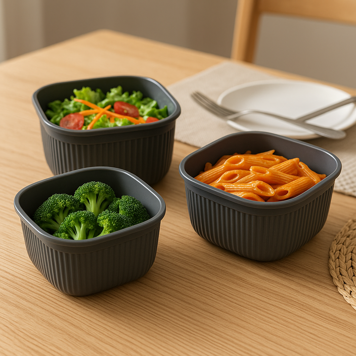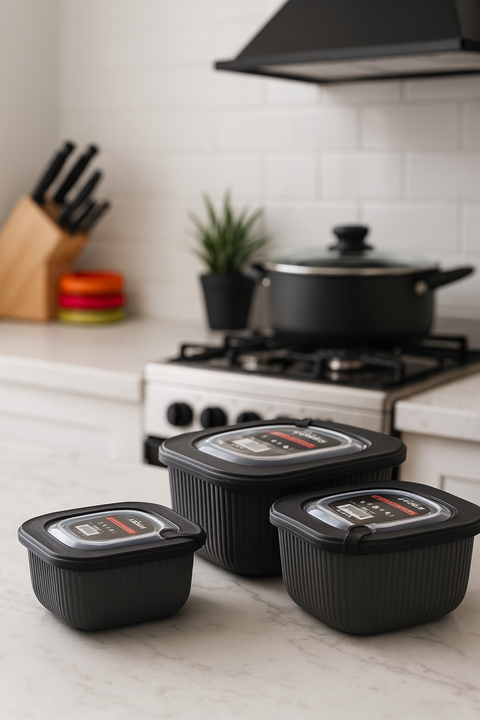 Set compuesto por 3 contenedores, tuppers plasticos con tapa. Cada contenedor tiene orifico en la tapa para permitir entrada y salida de aire en caso de desearlo. Son de la mas alta calidad en plastico idelaes para guardar todo tipo de alimento. Las medidas y capacidades son : 1- El mas grande tiene...