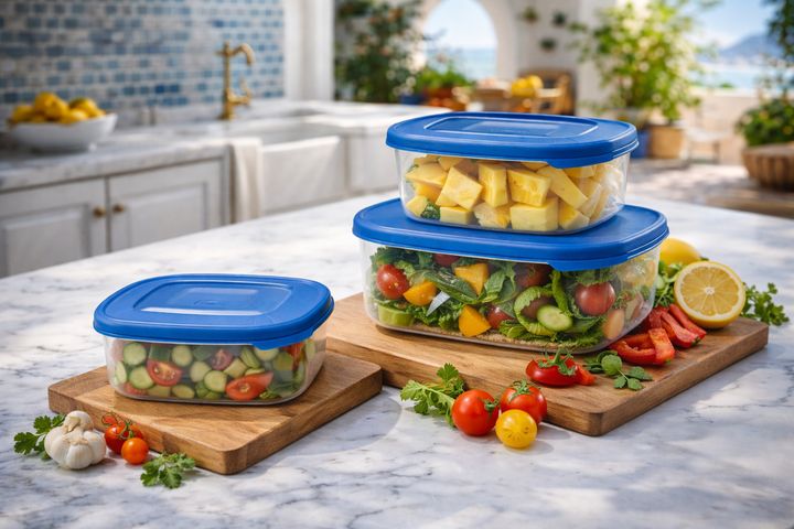 Set compuesto por 3 hermeticos Plasticos Italianos Tontarelli de la mas alta calidad europea. Uno de cada medida : - 1 unidad de Capacidad : 2,5 litros . Medidas : 18,5 x 18,5 x 9 cms - 1 unidad de Capacidad : 1,50 litros . Medidas : 15,5 x 15,5 x 7,5 cms - 1 unidad de Capacidad : 0,95 litros . Medi...