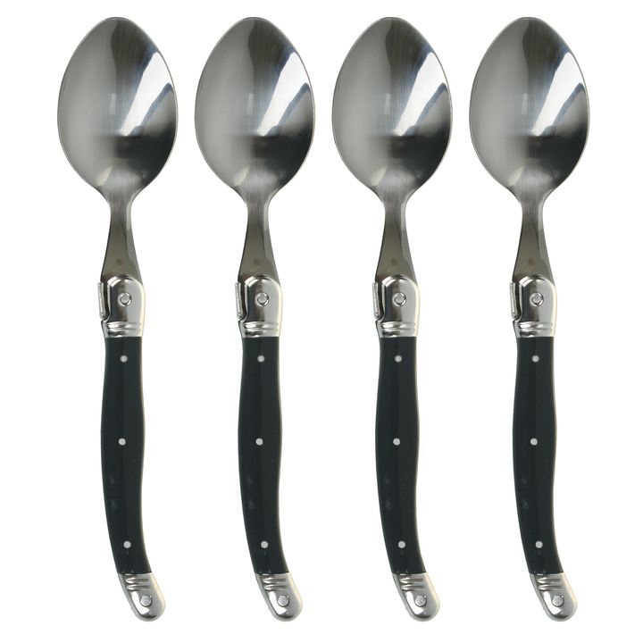 Set x 4 Cucharas de mesa ideales para todo tipo de comida y toda ocacion . Pueden utilizarse para tomar sopas o servir . Marca: LOU LAGUIOLE AMEFA Modelo: TRADITION Material: Metal , Acero Inox , Acero Inox 430 -18/0 Dimensión: 1,2MM Número de piezas: 4 Color: Acero y Gris Acabado: Brillo Caracterís...