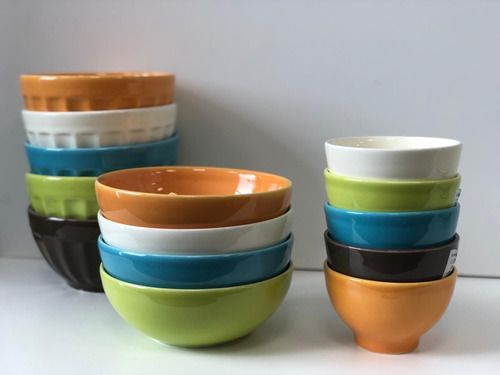 SET X 4 Plato Postre de 20 cms de diametro Ceramica color : Celeste / Verde Manzana / Crema / Naranja Espesor : 0,50 cms Marca : KUTHAYA Origen : Turquia Apto para Lavavajillas y Microondas.