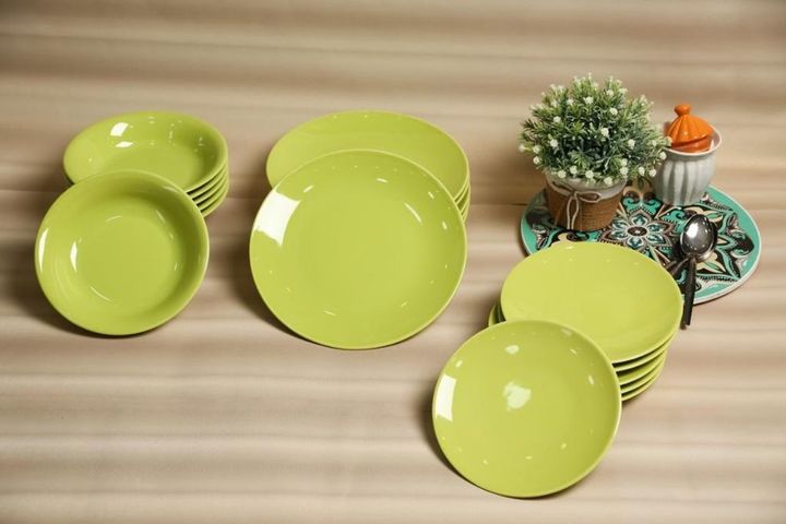 SET X 4 Plato Postre de 20 cms de diametro Ceramica color : Celeste / Verde Manzana / Crema / Naranja Espesor : 0,50 cms Marca : KUTHAYA Origen : Turquia Apto para Lavavajillas y Microondas.