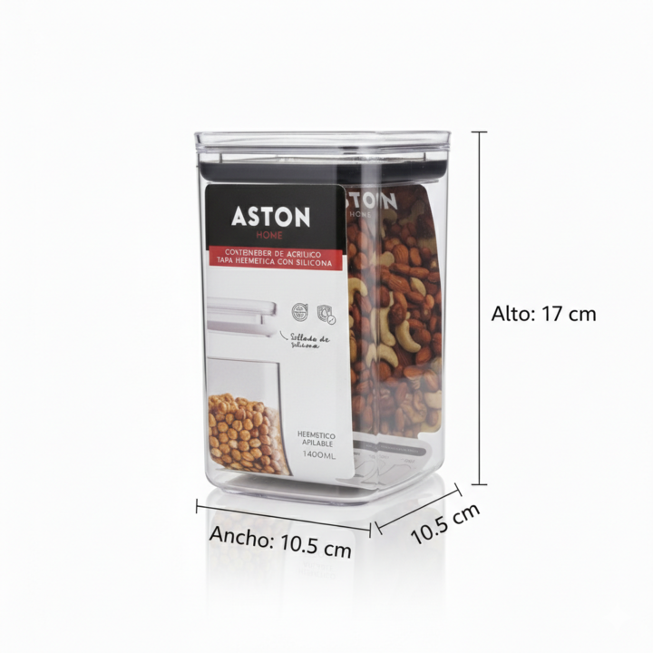 ¡Organiza tu cocina con estilo y eficiencia con el Contenedor Hermético Aston Home! Ideal para mantener tus alimentos frescos por más tiempo y optimizar el espacio en tu alacena. Características destacadas: -Material de alta calidad: Fabricado en acrílico resistente y duradero. -Gran capacidad: Son ...
